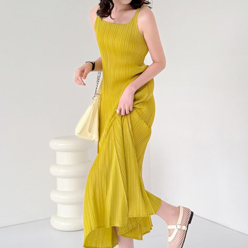 【羽生摺衣】i摺衣-日系 古典風 復古 魚尾 細肩 洋裝(共二色)