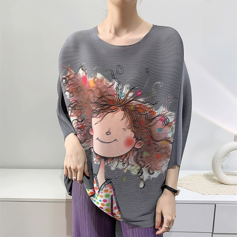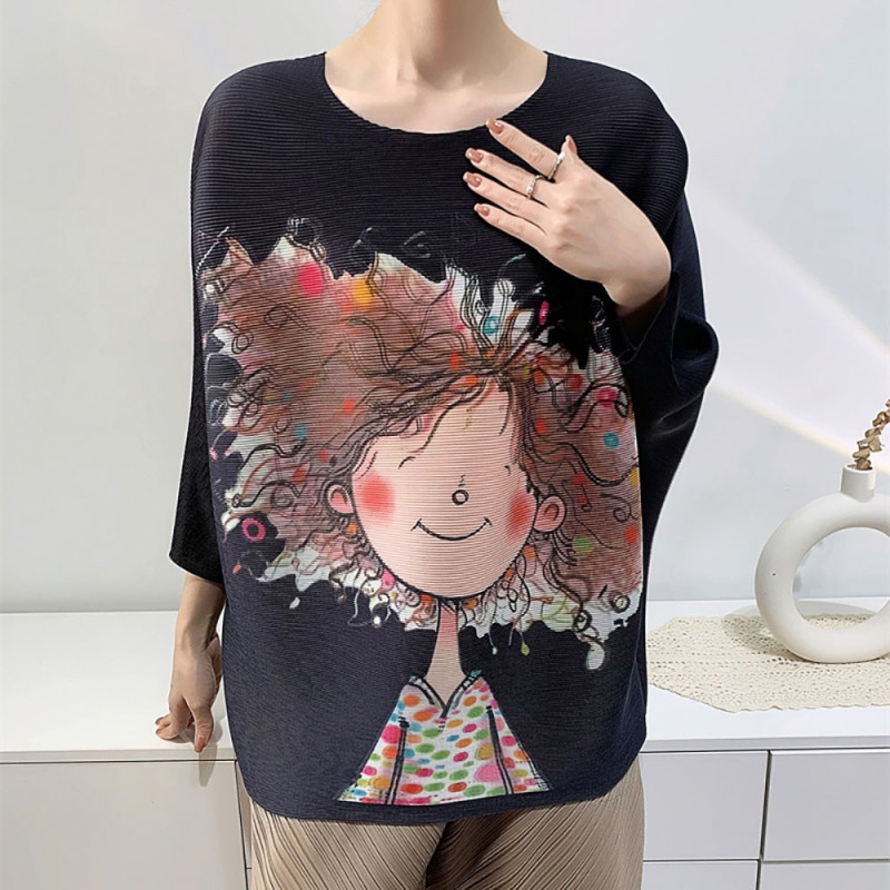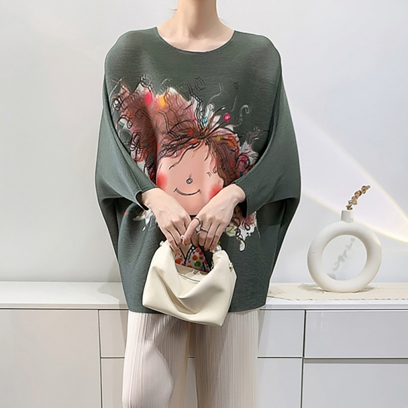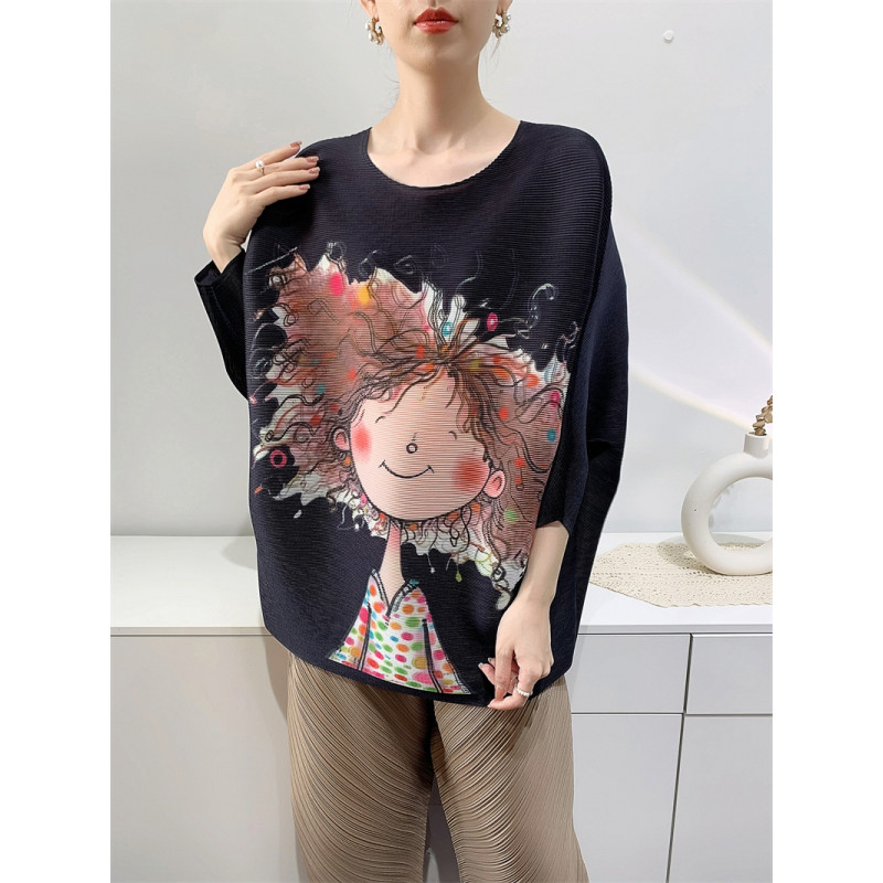 【羽生摺衣】i摺衣-日系 簡約風 寬版 橫壓摺 微笑女孩上衣(共三色)