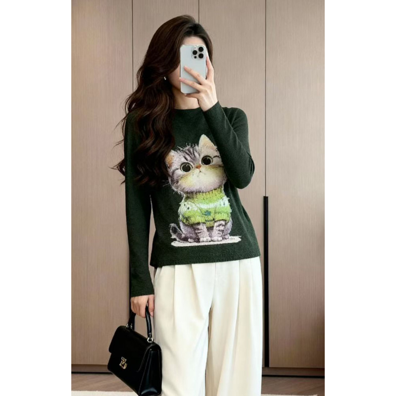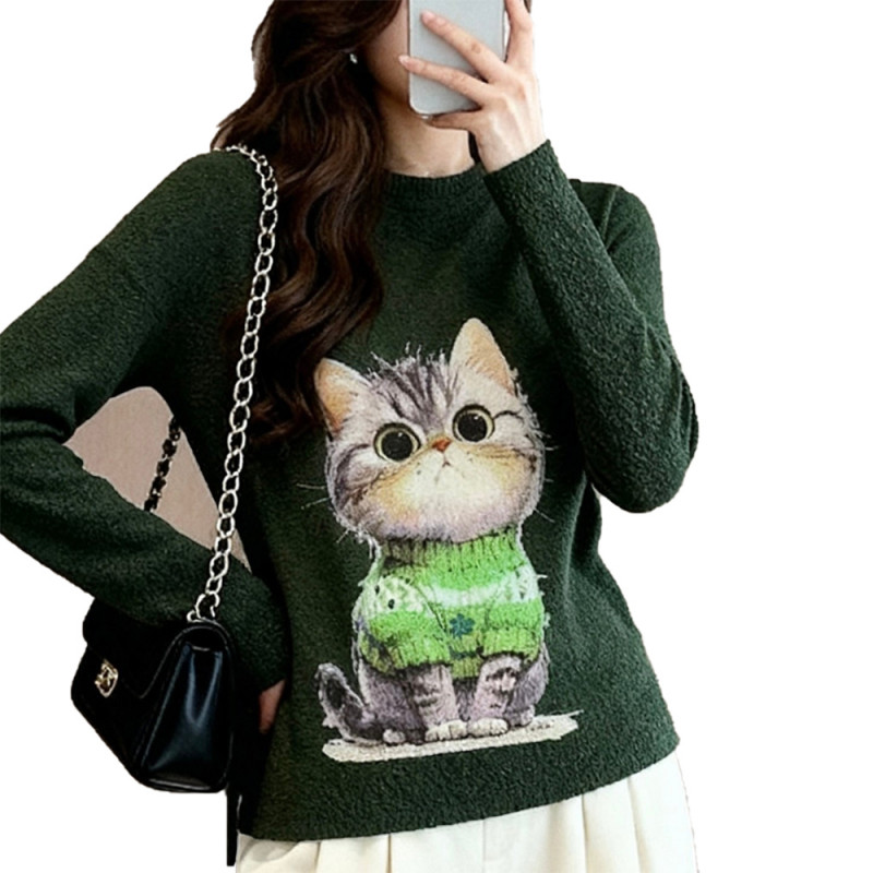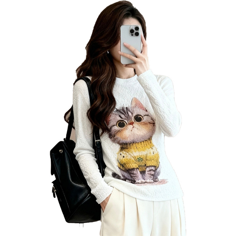 【羽生摺衣】i摺衣-日系 簡約風 細雪花摺 前後印 毛衣小貓 上衣(共三色)