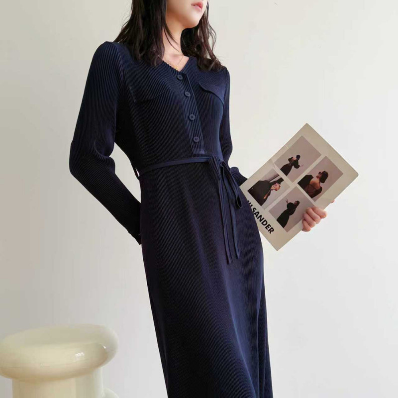 【羽生摺衣】i摺衣-日系 簡約風 V領 半開釦 洋裝(共三色)