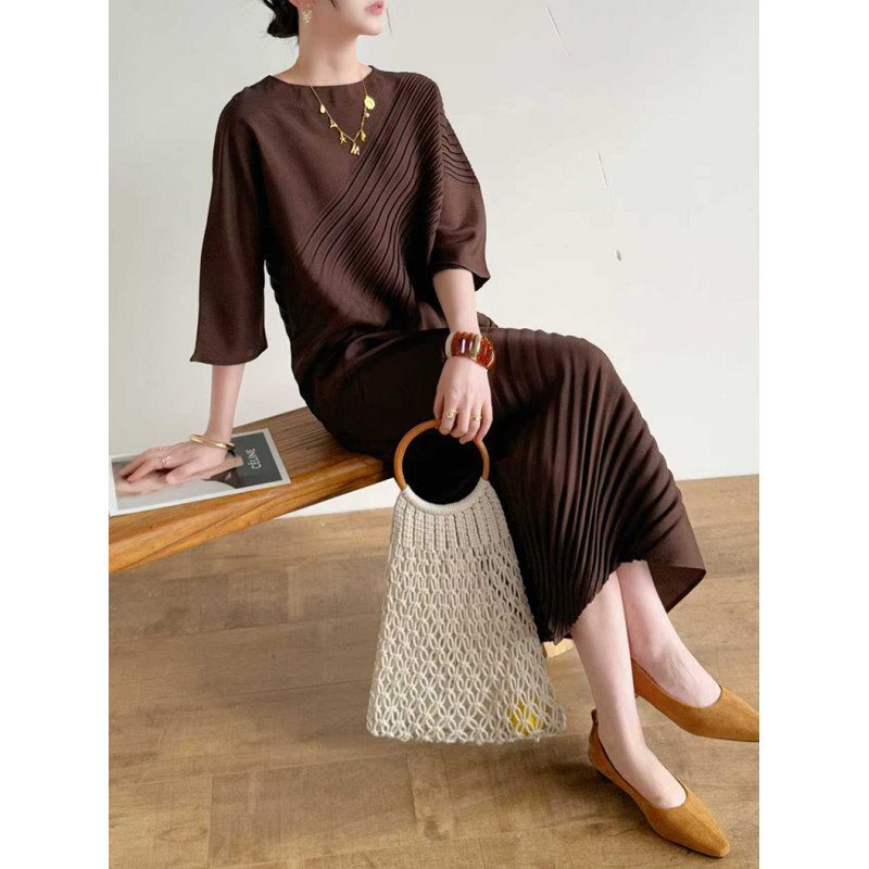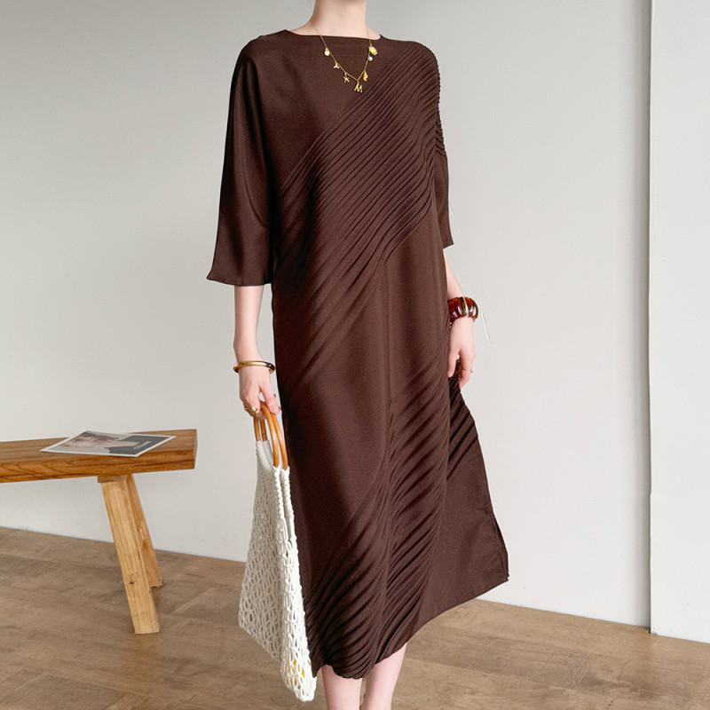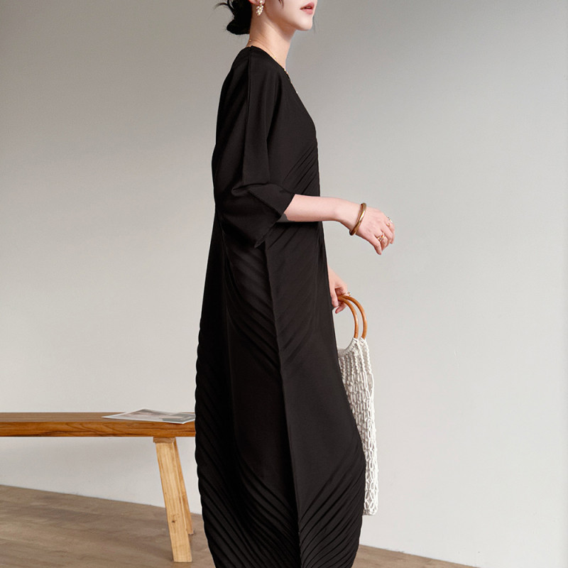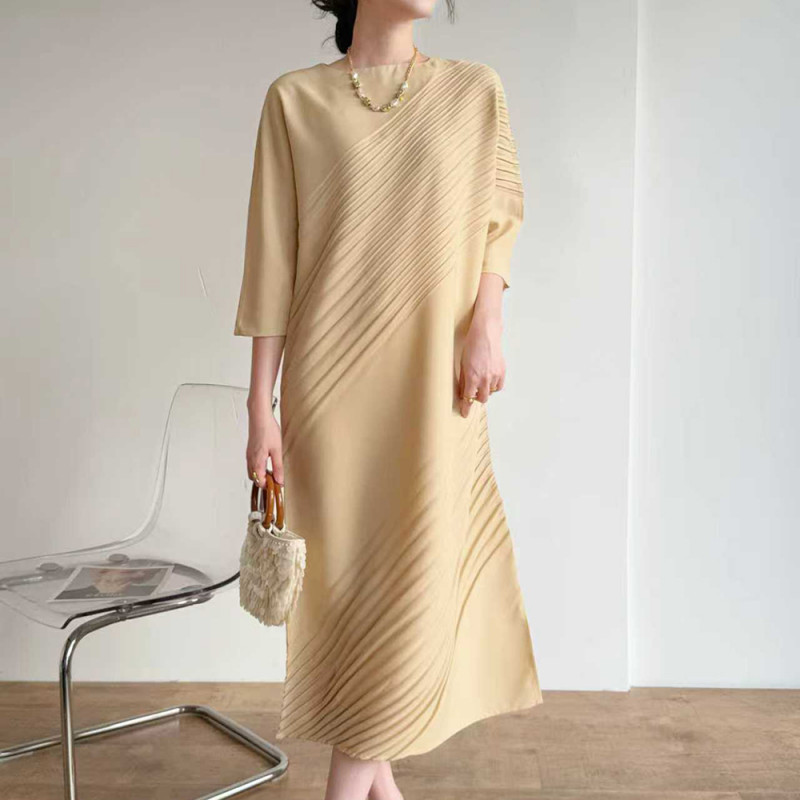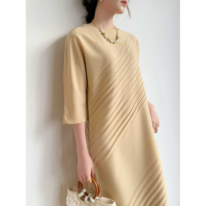 【羽生摺衣】i摺衣-日系 簡約風 圓領 上下 斜摺 洋裝(共三色)