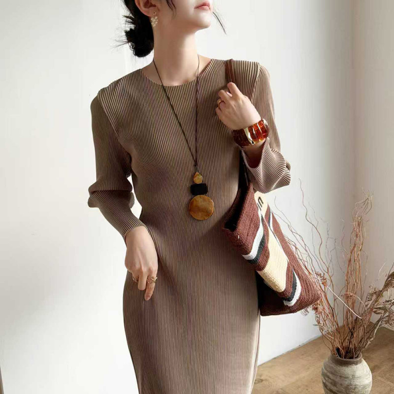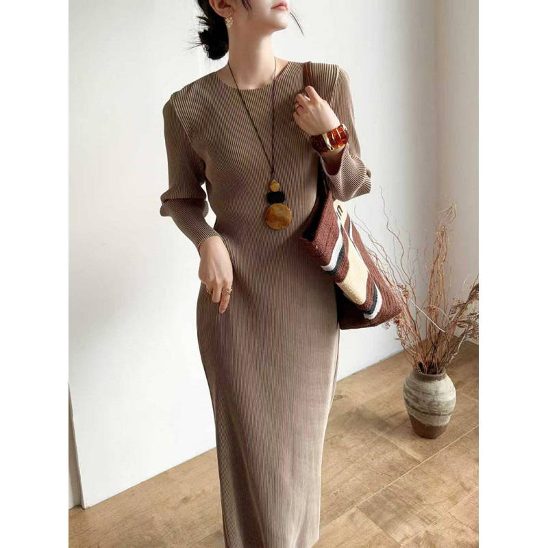 【羽生摺衣】i摺衣-日系 簡約風 圓領 後開叉 洋裝(共二色)