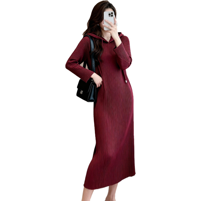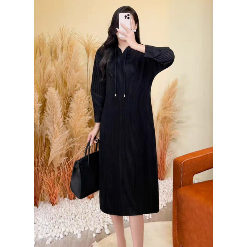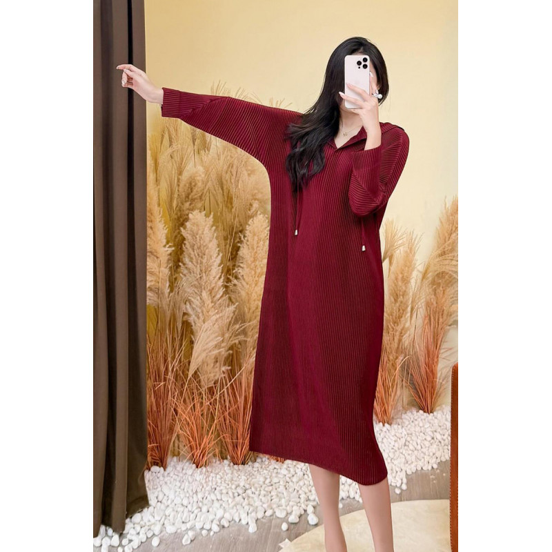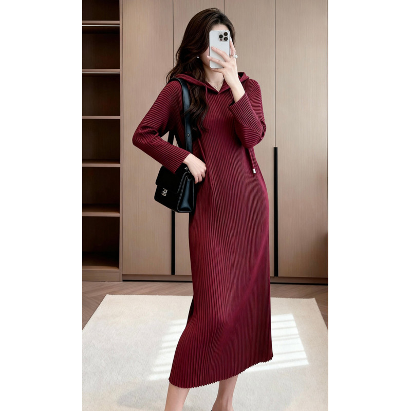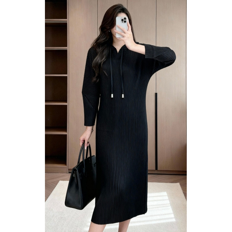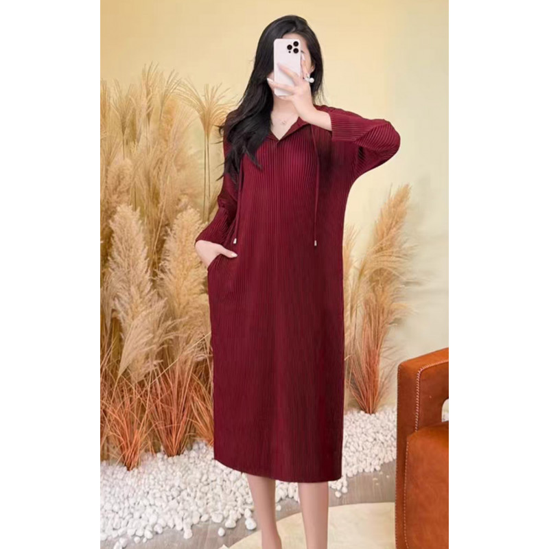 【羽生摺衣】i摺衣-日系 簡約風 摺 長袖 帽 洋裝(共二色)