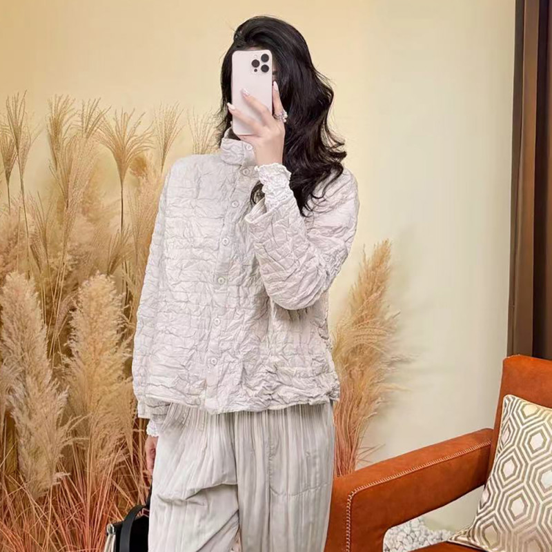 【羽生摺衣】i摺衣-日系 簡約風 立領 皺皺 鋪棉 外套(共三色)