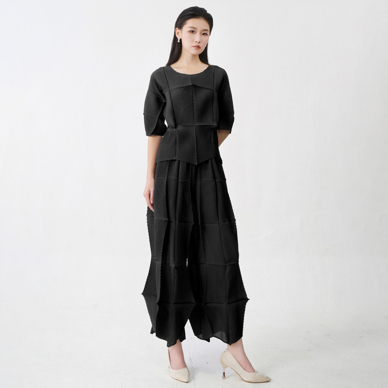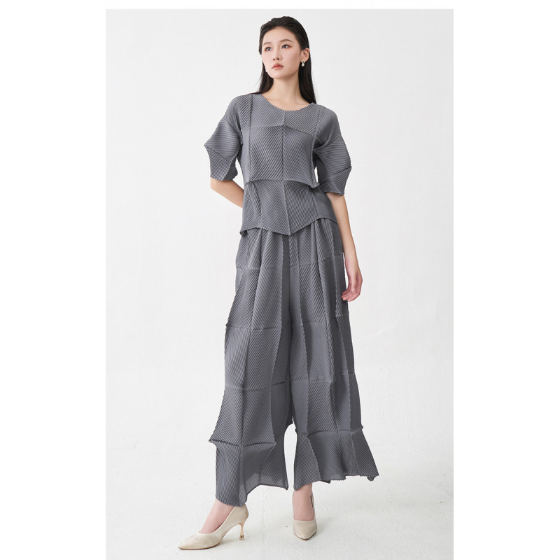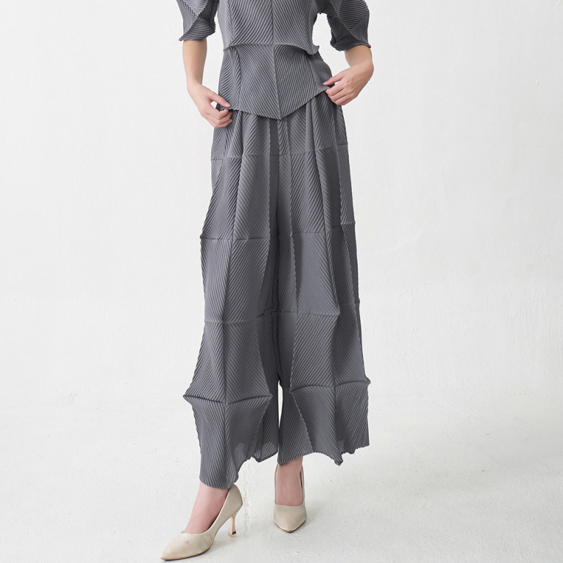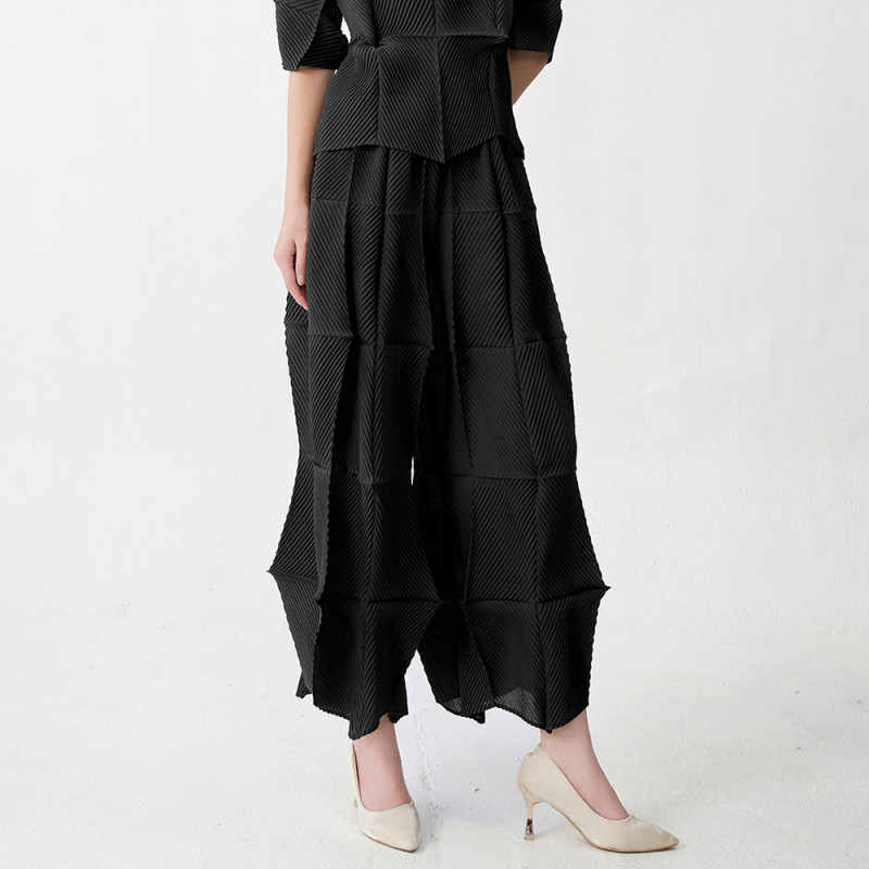 【羽生摺衣】i摺衣-日系 簡約風 大斜格 多角 寬褲(共二色)