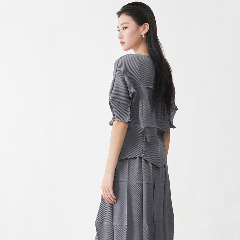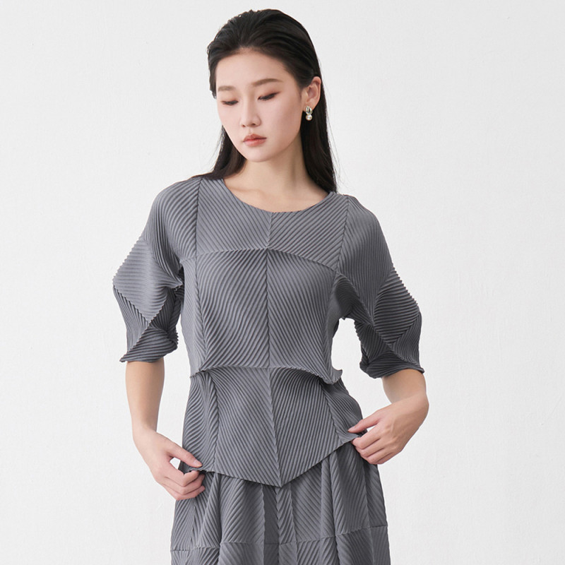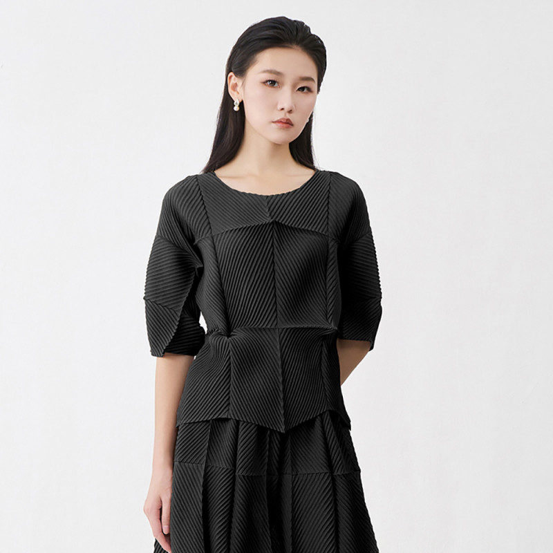 【羽生摺衣】i摺衣-日系 簡約風 斜格 多角 上衣(共二色)