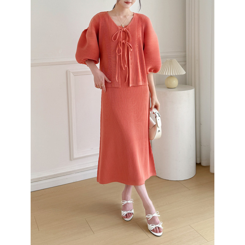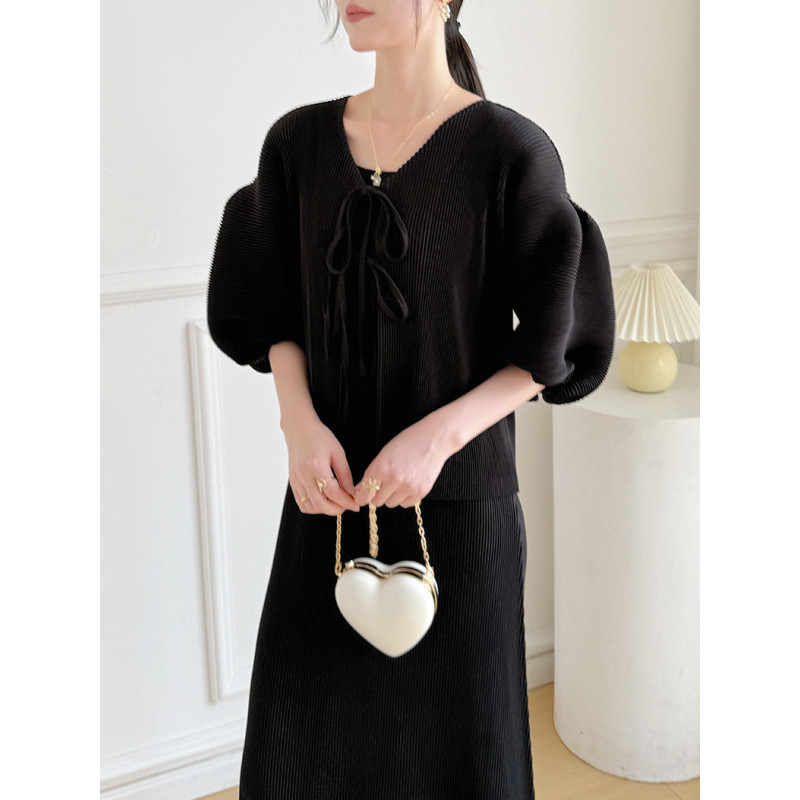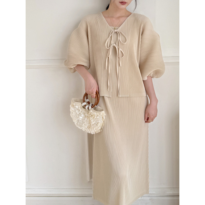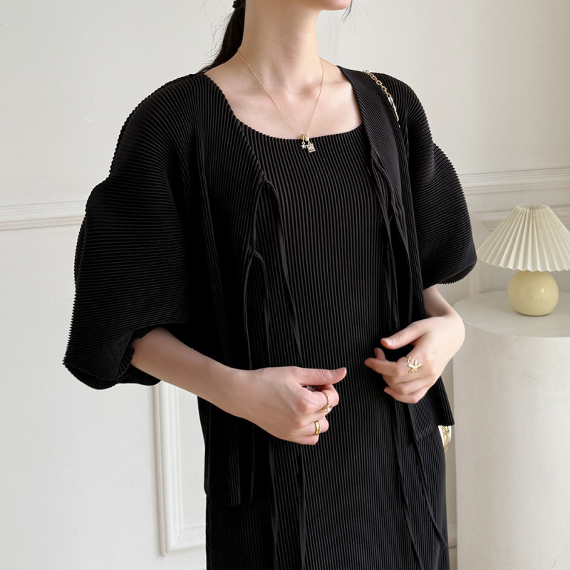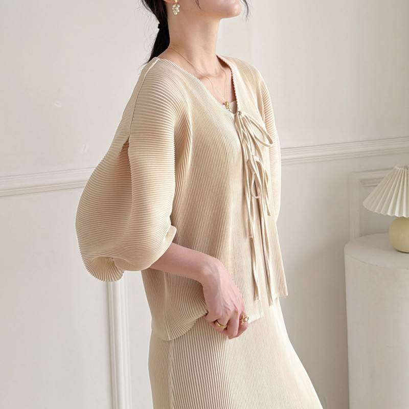 【羽生摺衣】i摺衣-日系 小香風 澎袖 綁帶 外套 上衣(共三色)