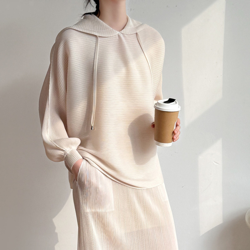 【羽生摺衣】i摺衣-日系 簡約風 素色 橫紋 連帽 上衣(共四色)