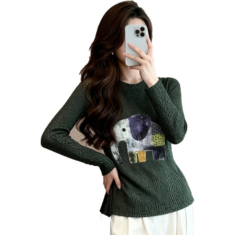 【羽生摺衣】i摺衣-日系 簡約風 細雪花摺 前後印 大象 上衣(共三色)