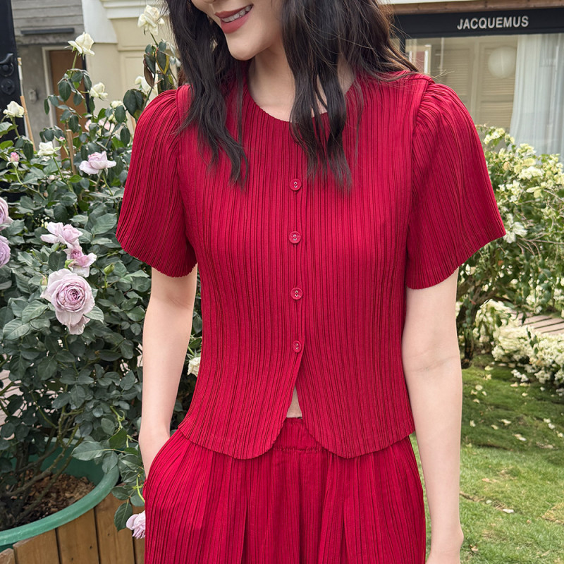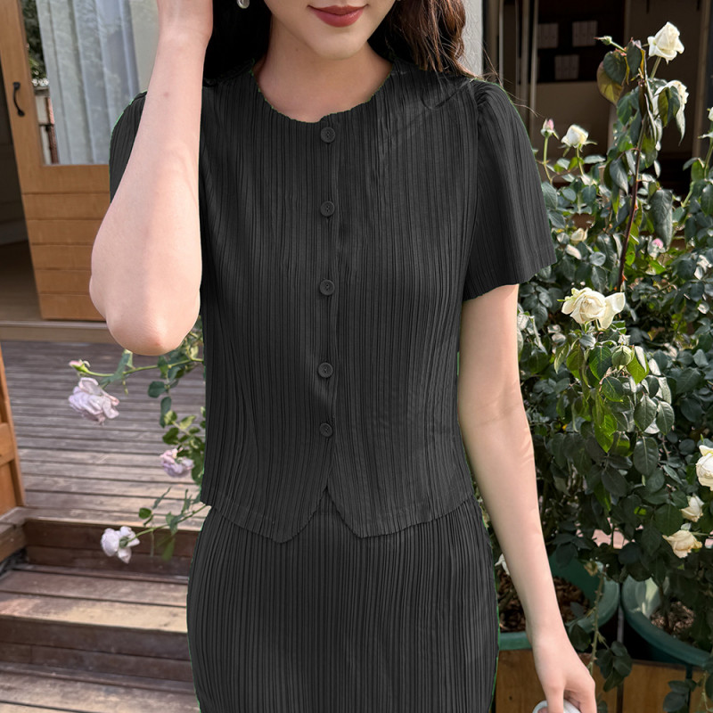 【羽生摺衣】i摺衣-日系 簡約風 短袖 排扣 上衣(共三色)