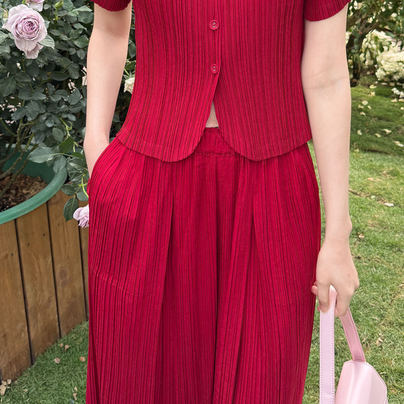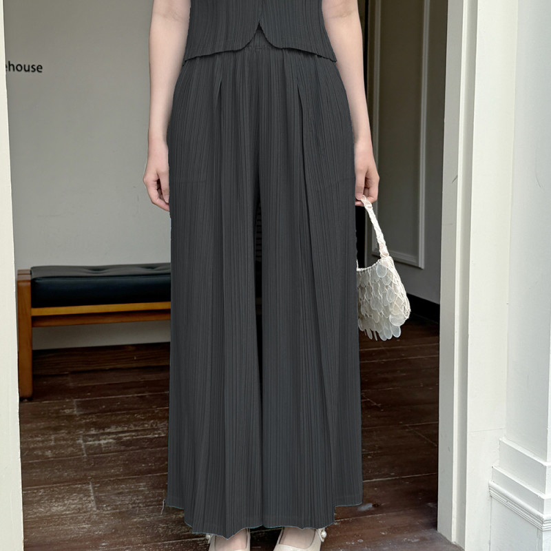 【羽生摺衣】i摺衣-日系 簡約風 雙高叉 打摺 寬褲(共三色)