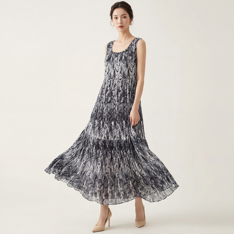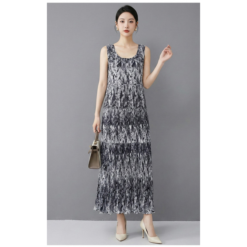 【羽生摺衣】i摺衣-日系 古典風 皺皺 亂紋 背心 長 洋裝(共一色)